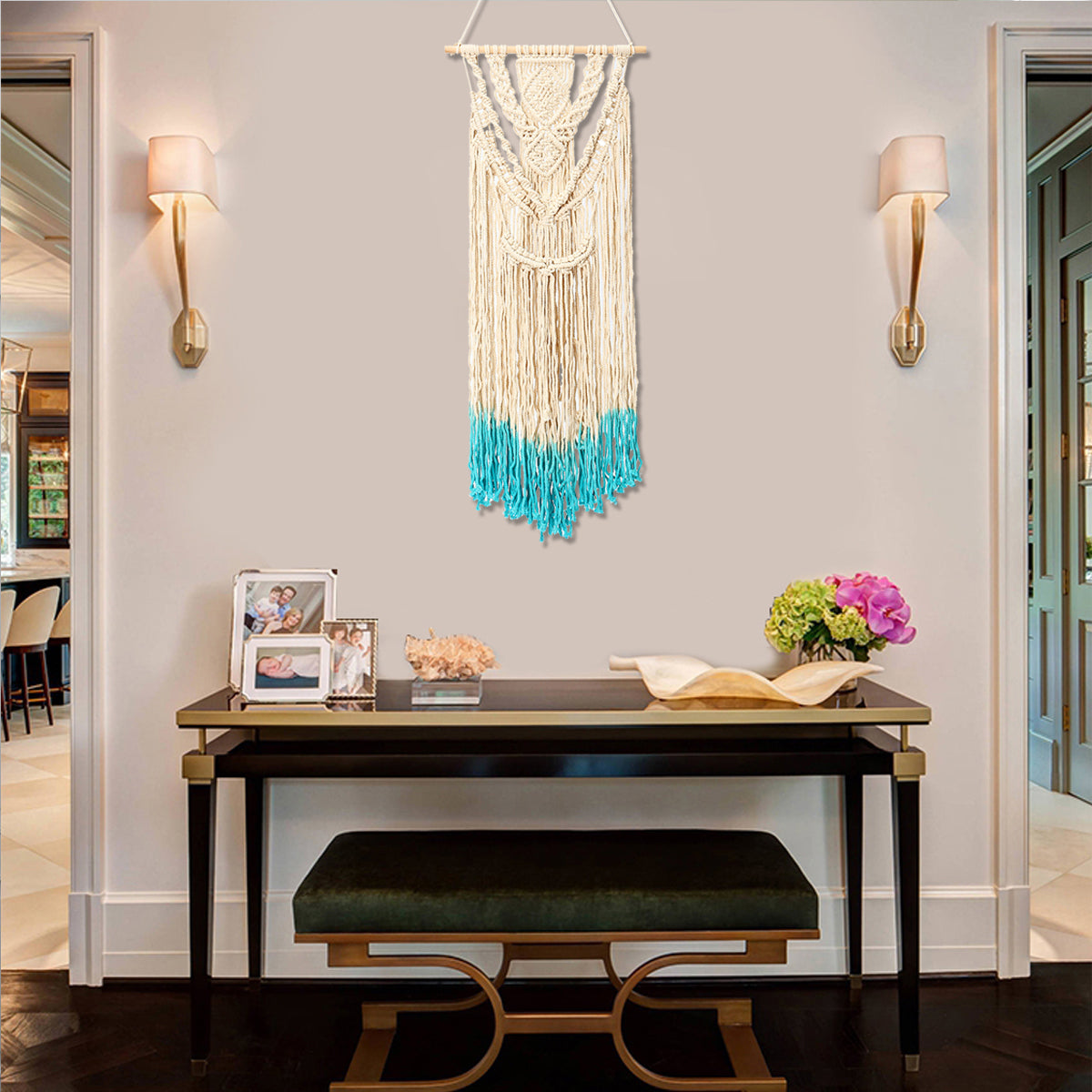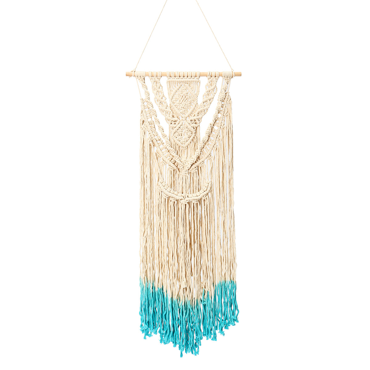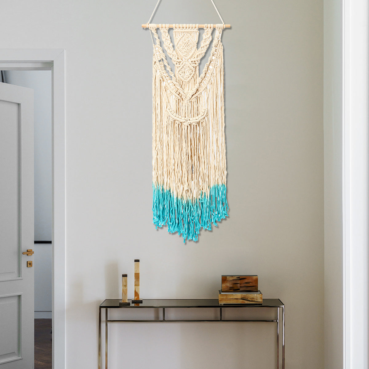 18'' Beige Blue Handmade Macrame Wall Hanging Cotton Tapestry Bohemian Art Decor