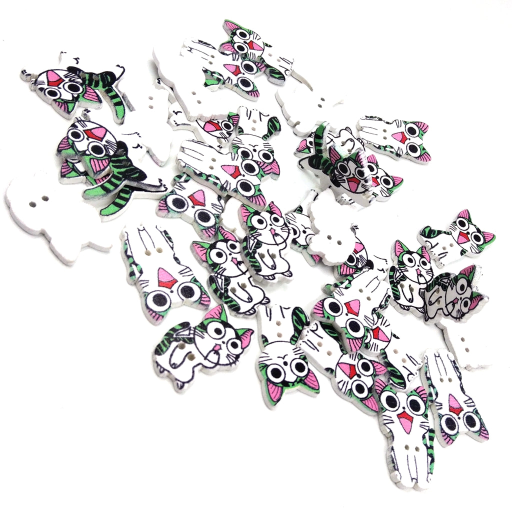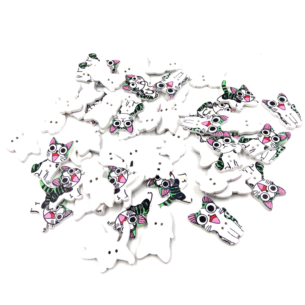50PCS 21-26MM DIY Animal Wood Buttons Painted Cute Cat Hand-sewing Decorative Other Crafts Accessories