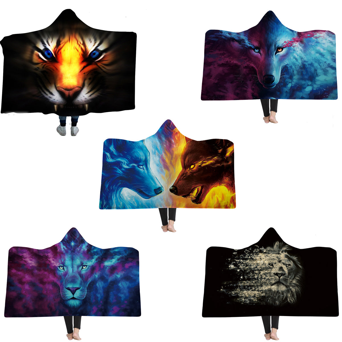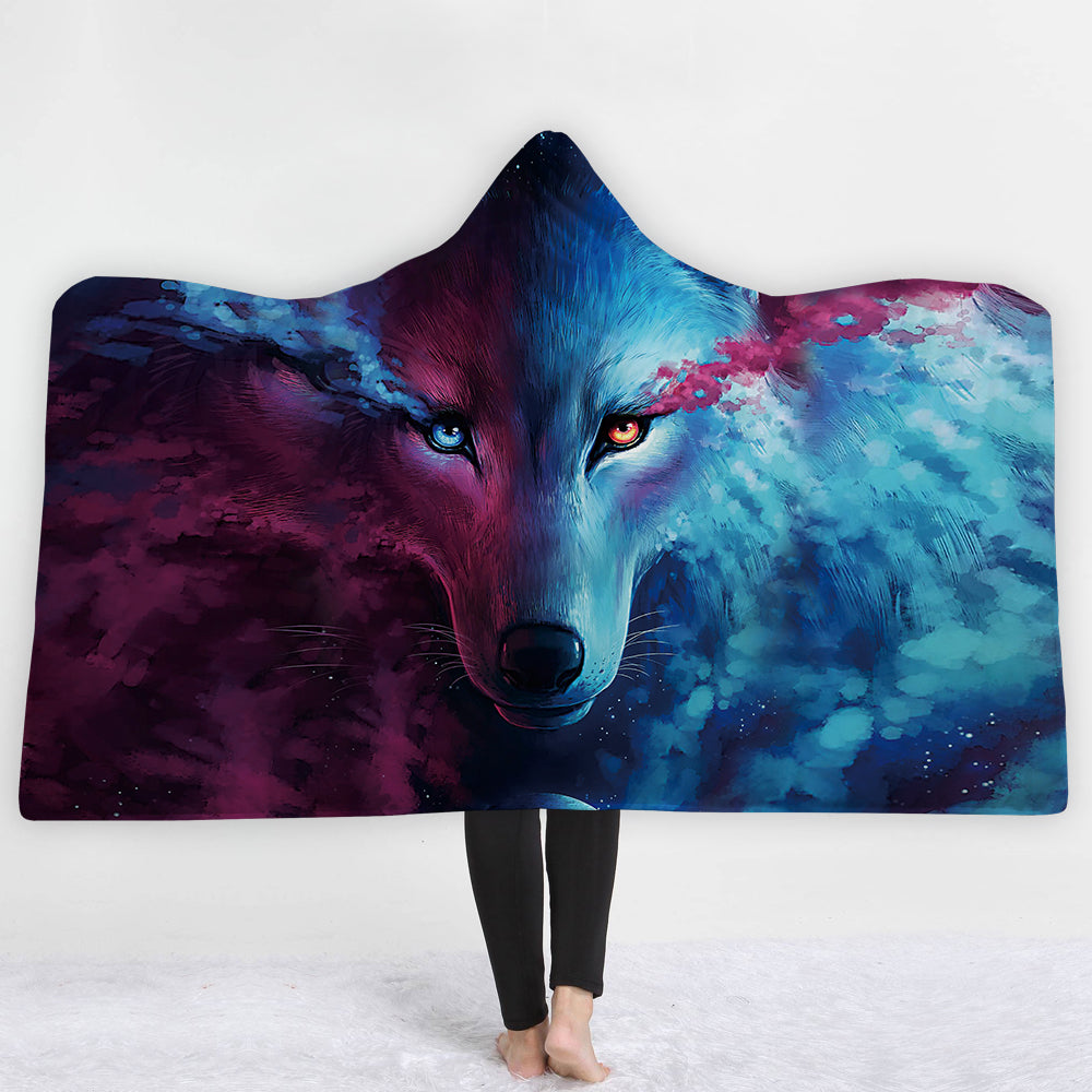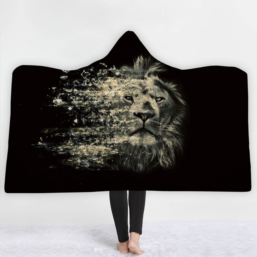 Thick Luxury Family Wolf Lion Hooded Hoodie Blanket Winter Warm Coral Fleece Blankets